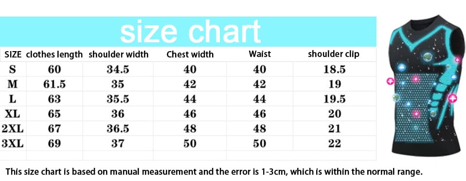 - This Ionic Shaping Vest Utilizes Advanced Compression Technology To Shape And Define Your Muscles,Aimed At Enhancing Male Charm.It Can Regulate Blood Flow.Decrease Accumulation Of Chest Fat Tissue,And Build Perfect Chest And Abdominal Muscles.