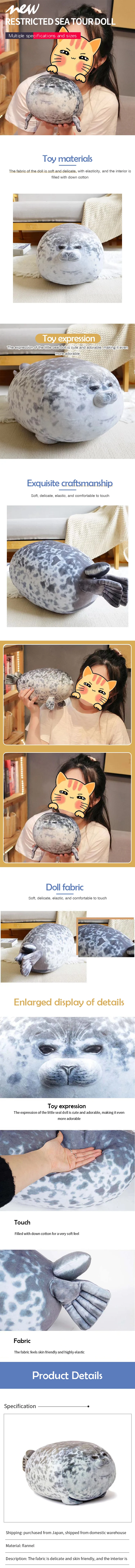 • Soft Fill PP Cotton :This 20cm seal pillow is filled with soft PP cotton, ensuring a comfortable and snuggly feel.