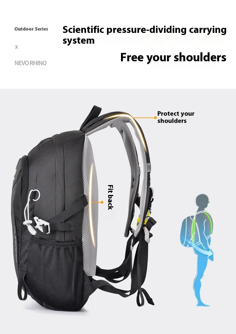 The ergonomic design and padded shoulder straps ensure comfort even when the backpack is fully loaded. Breathable back panels increase airflow, reduce sweat accumulation, and help prevent shoulder strain during prolonged use.