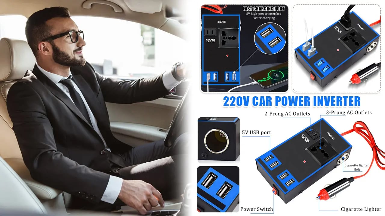 【Fast Charging】This 1500W car power inverter features dual 220V AC outlets and 4 USB ports. 5V/dual USB ports can automatically detect your devices to deliver optimal charging speed, great for your kindles, iPhones, iPads, tablets, MP3 players, cameras, and other mobile devices