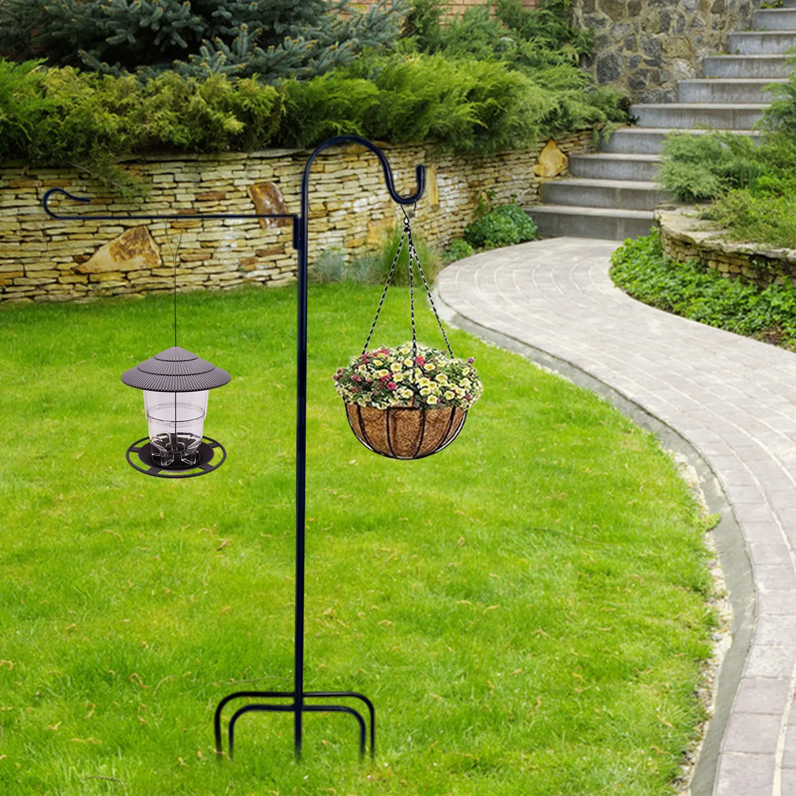 Once installed, you can easily hang bird feeders, lanterns, flower baskets, or outdoor lights from the hook. The height is perfect for displaying items that require visibility or for keeping plants and bird feeders off the ground.