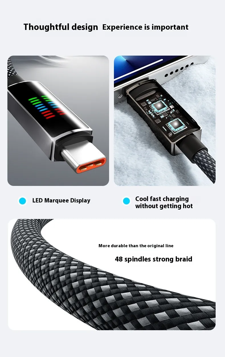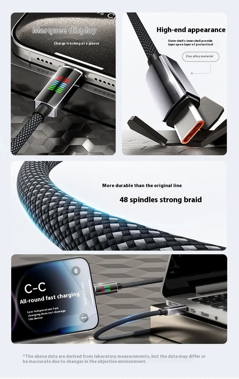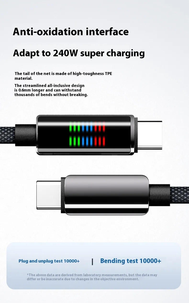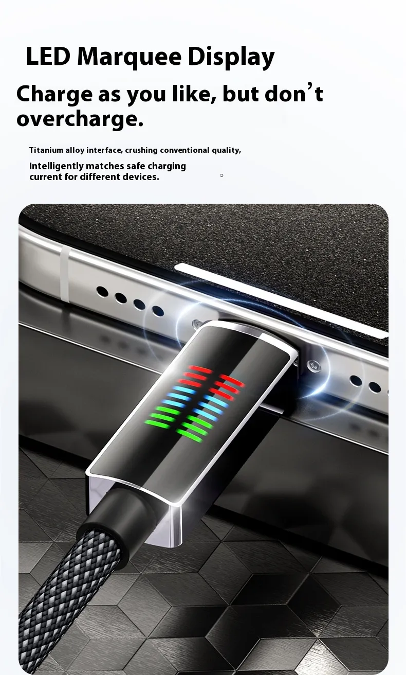 240W Super Fast Charge Type-C Horse Running Light Display Charging Cable
