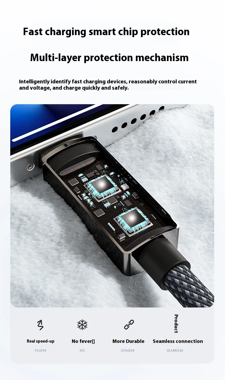 With 240W ultra-fast charging support, it powers smartphones, tablets, and other compatible devices quickly and efficiently. The durable braided design ensures resistance to wear and tear, while reinforced connectors prevent bending and damage. Perfect for home, office, or travel use, this cable guarantees reliable performance and a long lifespan.