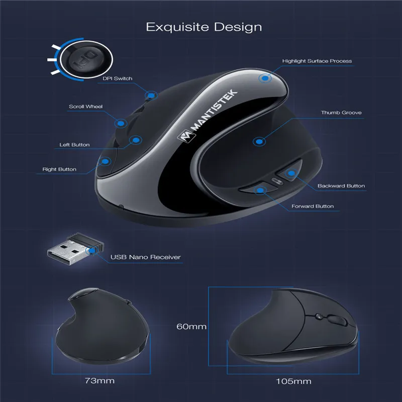 Its vertical ergonomic design supports a natural handshake position, helping to reduce wrist strain and prevent repetitive stress injuries like carpal tunnel syndrome. The sculpted grip fits your hand perfectly, promoting healthy posture and long-term comfort during extended use.