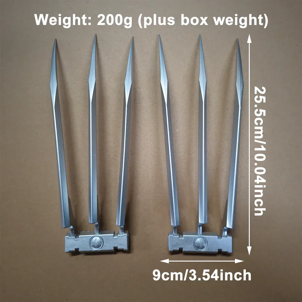 These 25cm Wolverine claws are designed to closely mirror the real claws seen in the Marvel Universe. Featuring the signature wolf-like look, these claws have a realistic appearance with intricate detailing that makes them look just like the ones used by James Howlett in the X-Men films. The sharp tips and sleek design are crafted to capture the fierceness and iconic aesthetic of the character's claws, giving you a truly authentic cosplay experience.
