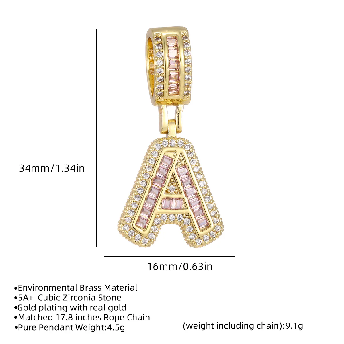 26 Letter Pendant Necklace Copper Inlaid Zirconium Plated Real Gold