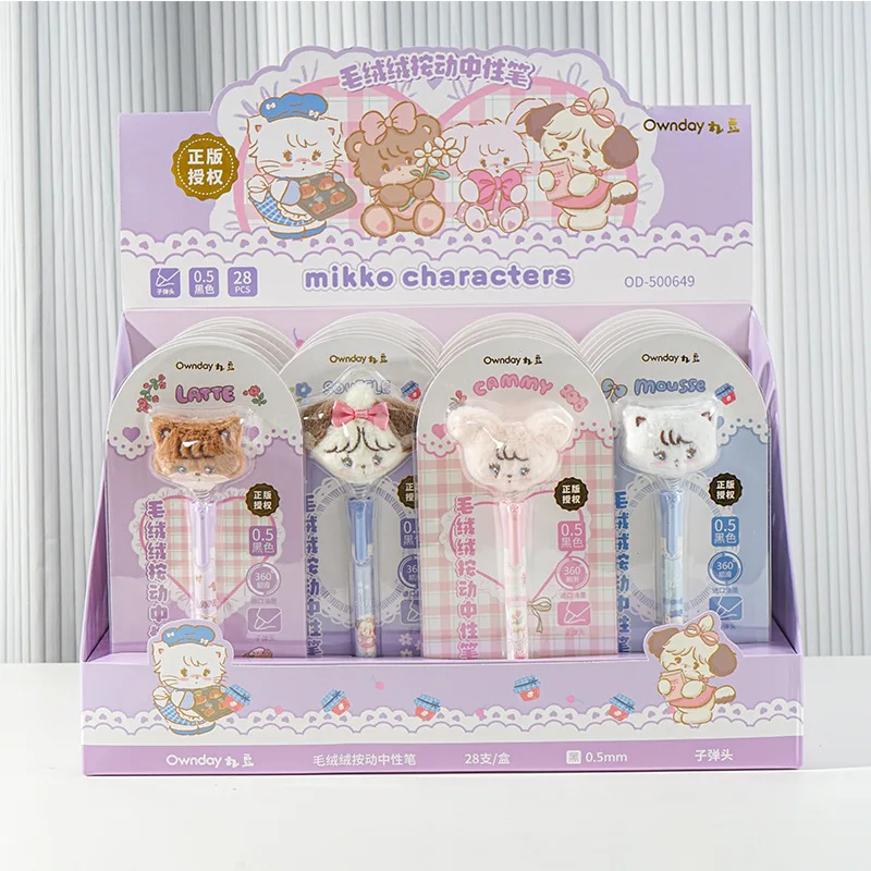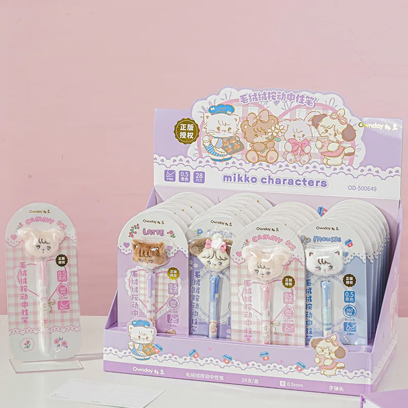 28pcs Miniso Mikko Plush Doll Neutral Pen Set Cartoon Mikko Writing Pens, 0.5mm Black Gel Pens for Students, Stationery