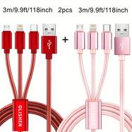 2pcs 3-in-1 Fast Charging Cable Strong, Reliable & Universal Charging Made Easy