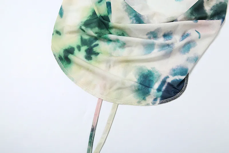 2pcs Tie Dye Printing Deep V-neck Suits Fashion Halter Backless Long Dresses For Beach Party