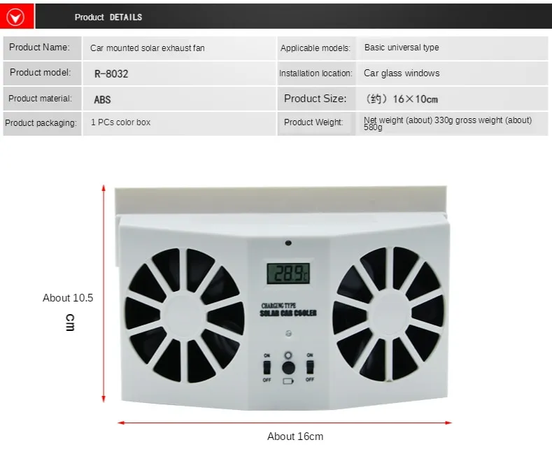 2W Car Solar Exhaust Fan Solar Car Exhaust Fan Car With Solar Cooling Artifact