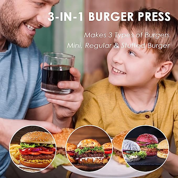 mould at the top is used to make mini pies or sliders. Having such a three-in-one burger press can meet your needs for making burgers of