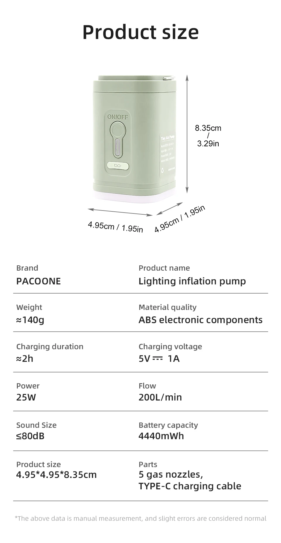 - 3 in 1 Functionality: Combines inflating, deflating, and lighting functions in one compact device.