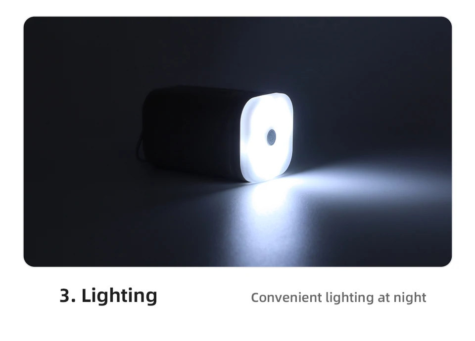 - Versatile Use: Combines inflating, deflating, and lighting functions in one compact device.
