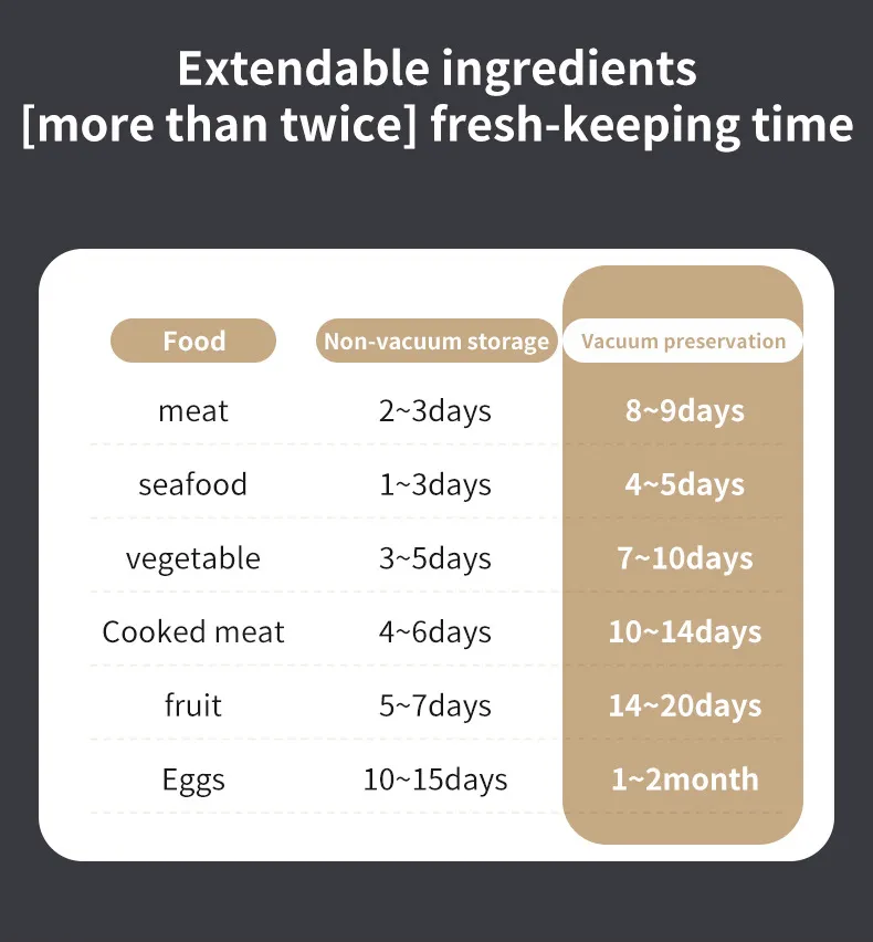 Extended Freshness and Shelf Life: The vacuum sealing function helps extend the freshness of your food by removing excess