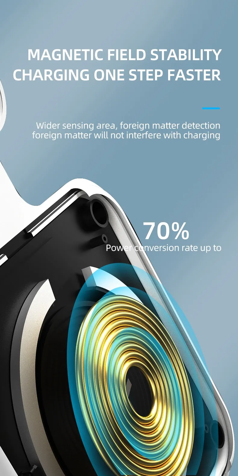 Magnetic Design: The charging station features a strong magnetic design that keeps your devices securely in place while