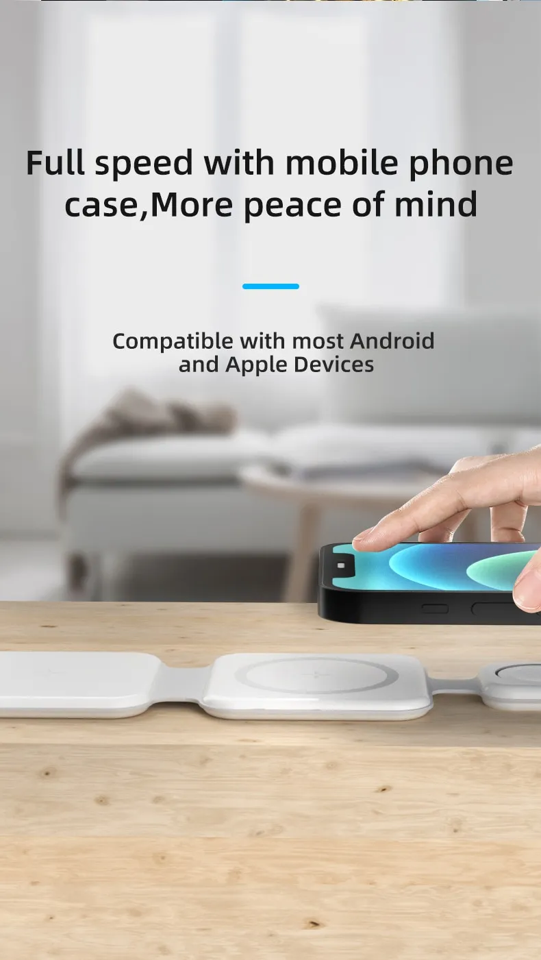 The 3-in-1 Magnetic Foldable Wireless Charger stands out in a crowded market for its combination of practicality, style, and innovation. If you’re tired of cluttered charging stations and tangled wires, this is the solution you’ve been looking for. The convenience of charging multiple devices at once, combined with its foldable portability, makes it the ideal gadget for both home and travel.