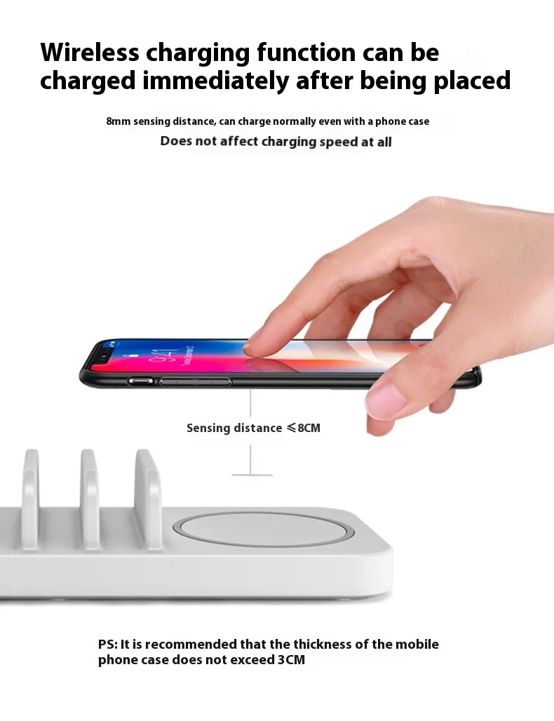 Equipped with three charging ports, this base delivers fast charging speeds, ensuring your devices are ready to go in no time. The bracket design not only secures your devices in place but also keeps them elevated for a comfortable viewing angle, whether you're watching videos, video calling, or checking notifications. Ideal for home, office, or travel use, this charger base simplifies your charging setup, reducing clutter and improving your overall charging experience.
