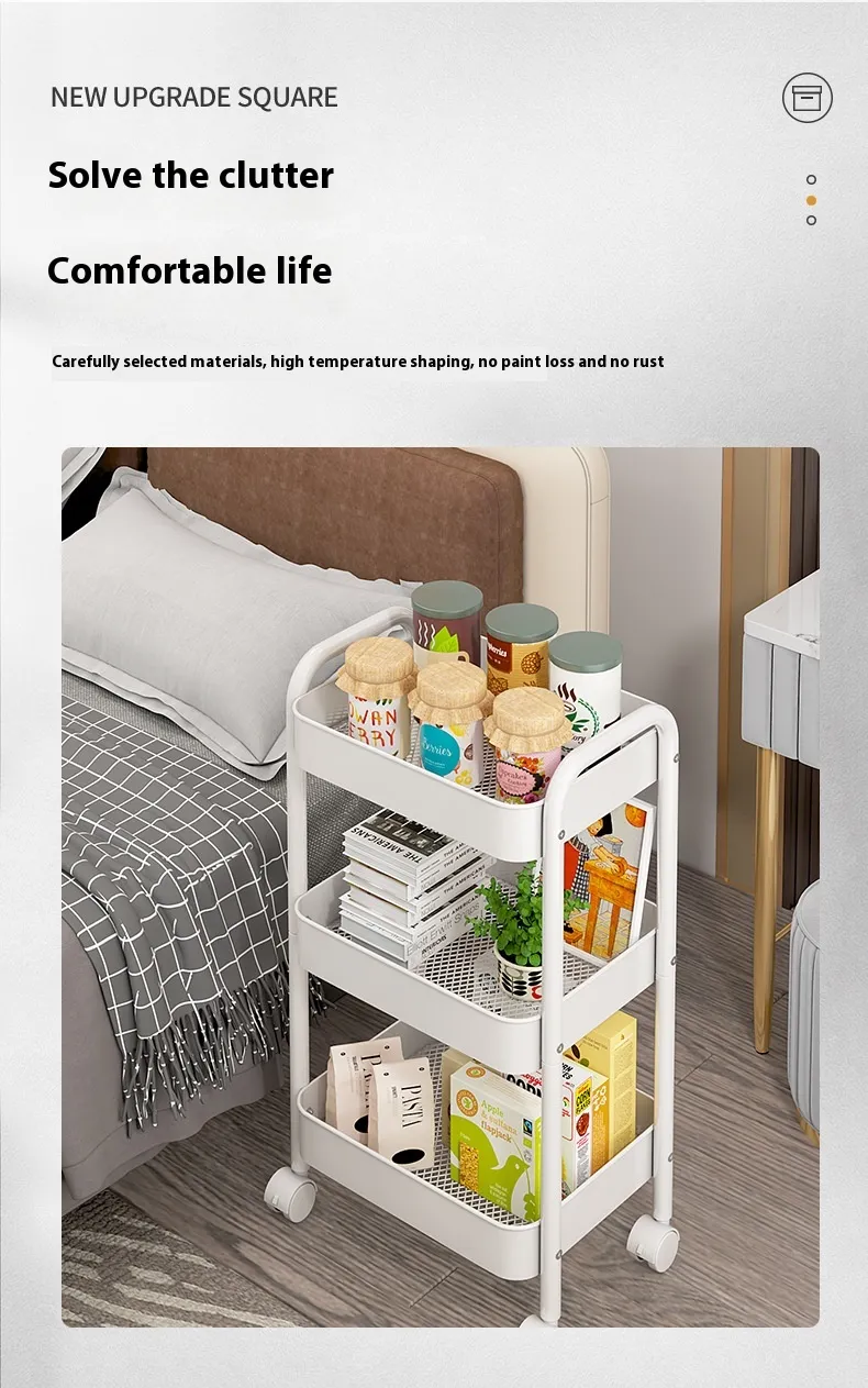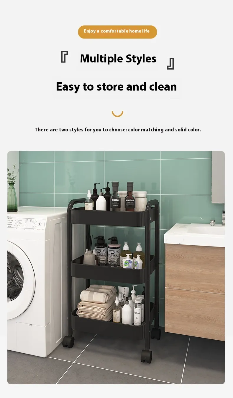Thanks to its rolling wheels, this trolley can be moved from room to room, providing portability and ease of access wherever you need it. Whether you're moving items between rooms or simply rearranging furniture, the 3-Tier Trolley makes it easy to adjust your space as needed.