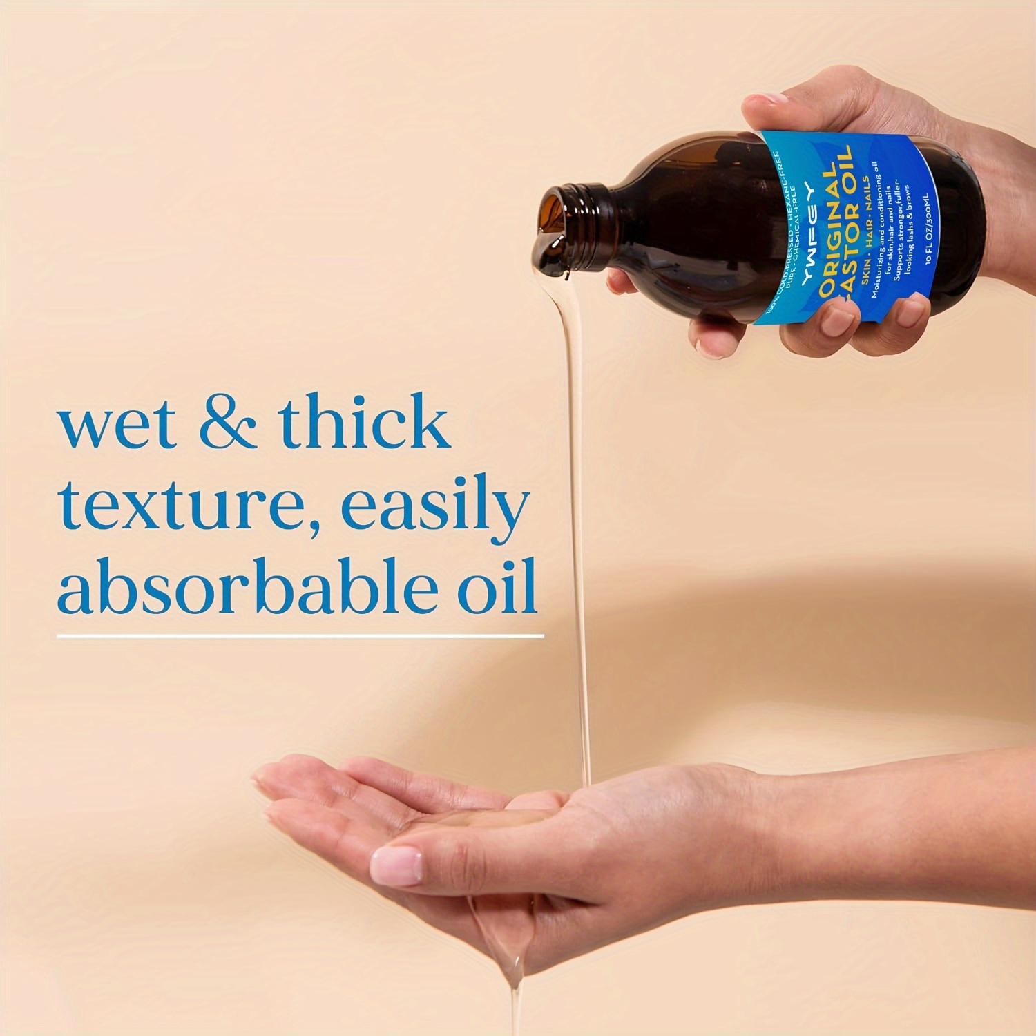 300 ml YWFEY Original Castor Oil Pure, Cold-Pressed Moisturizing Oil for Skin, Hair, and Nails