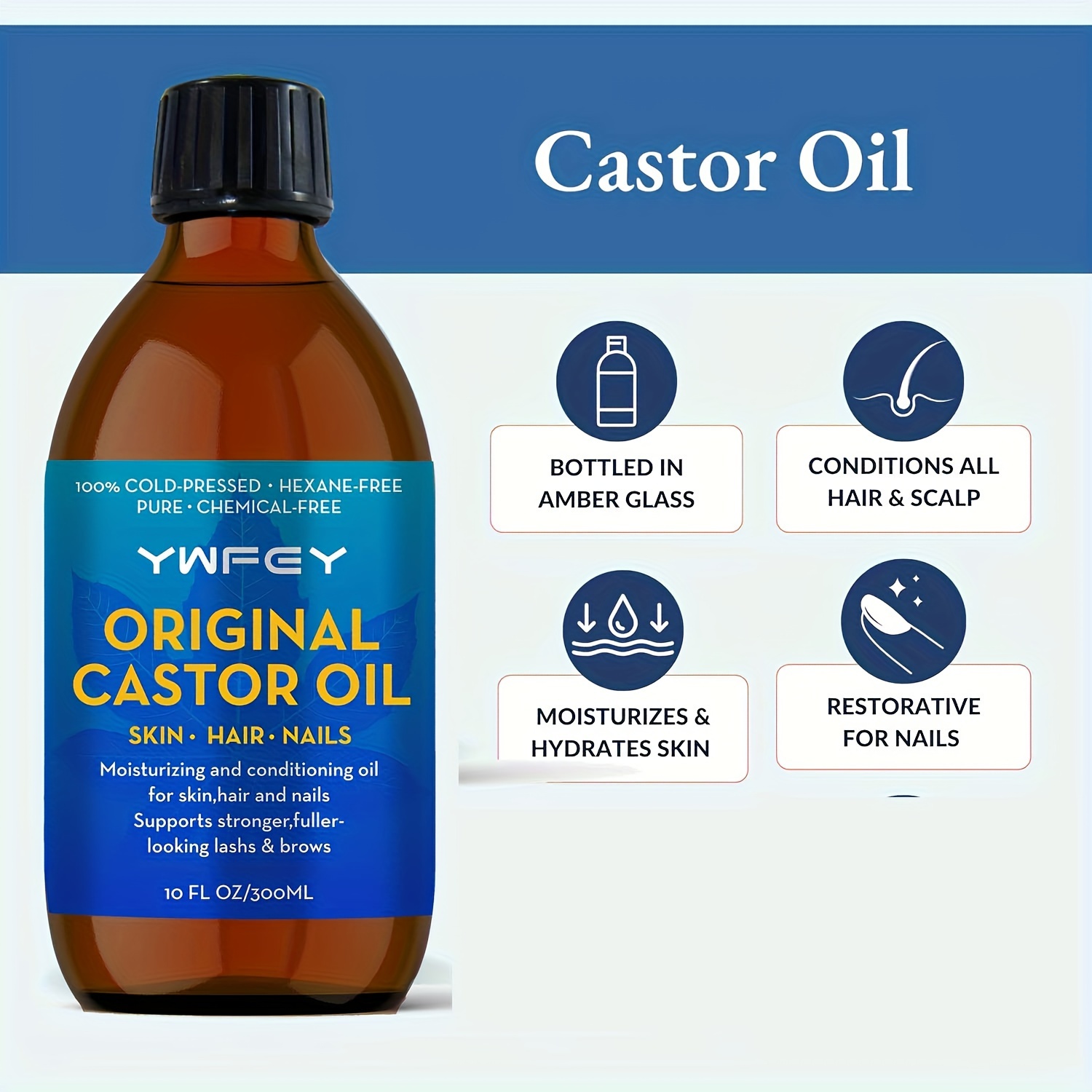The YWFEY Original Castor Oil is a must-have for anyone looking for a natural and effective way to hydrate, nourish, and strengthen their skin, hair, and nails. With its 100% pure, cold-pressed formula, this versatile oil supports healthier, fuller-looking lashes, hair, and more beautiful skin. Make it a part of your beauty routine for long-lasting results.