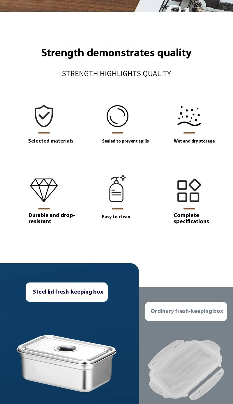 The 304 Stainless Steel Crispy Food Grade Lunch Box is made from food-grade 304 stainless steel, which is known for its strength, durability, and resistance to corrosion. This material is non-toxic, BPA-free, and safe for storing food, ensuring that your meals remain free from harmful chemicals. The high-quality construction of this lunch box ensures it will last for years, withstanding daily use and keeping your food safe.