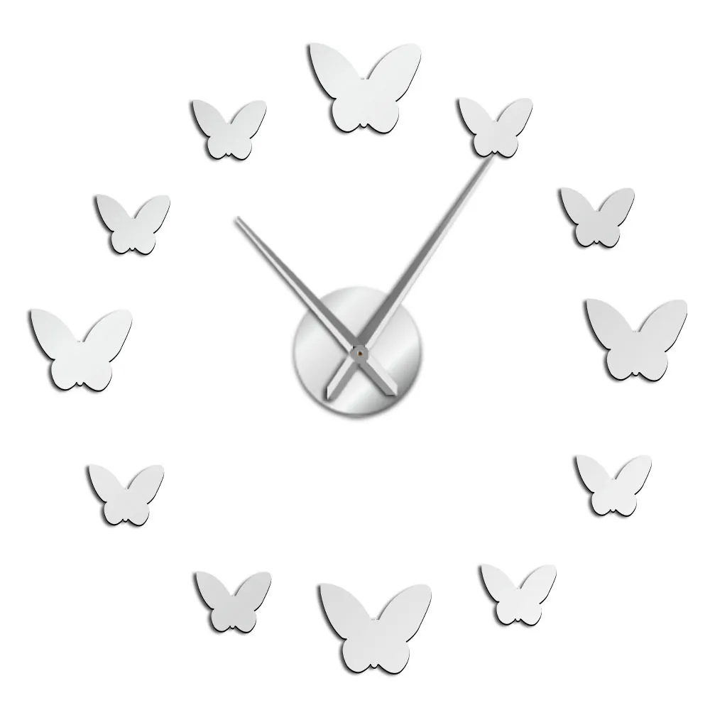 3D Mirror Wall Clock Butterfly Living Room Bedroom Home Decor Big Clock Time