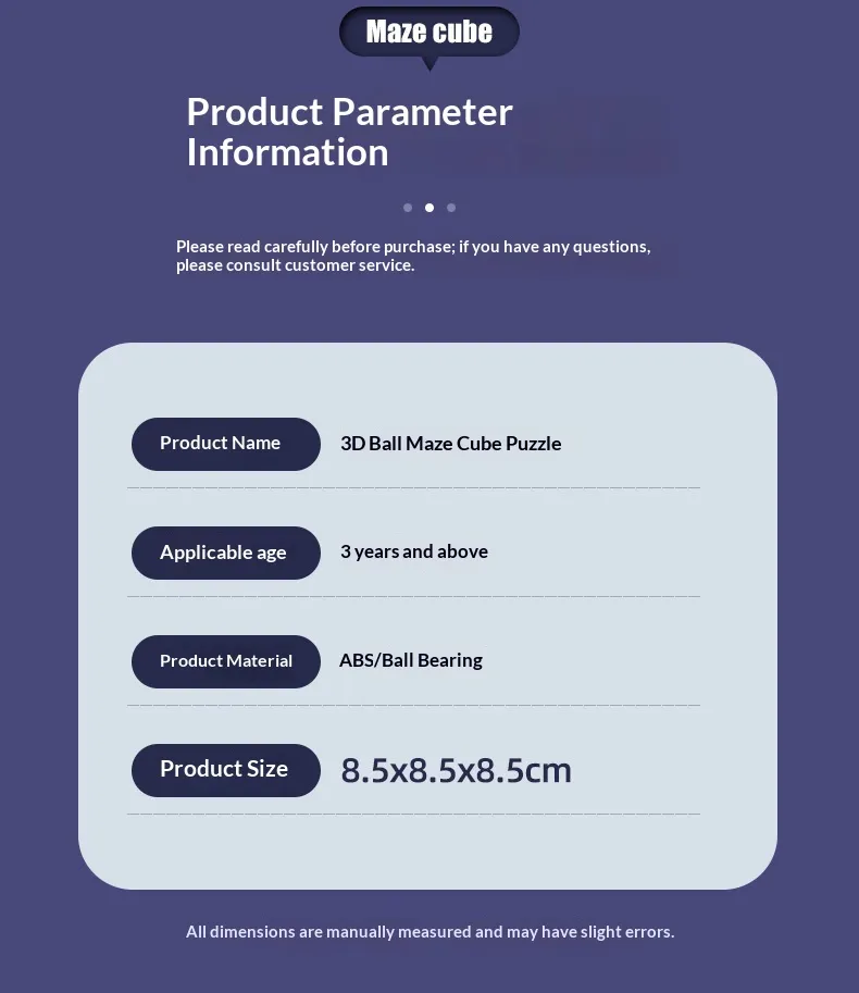 The 3D Puzzle Maze Cube is more than just a puzzle — it’s a multi‑dimensional journey that engages the mind, encourages strategic thinking, and enhances fine motor skills. From its durable construction and thought‑provoking maze design to its versatility and appeal across age groups, it offers long‑lasting entertainment and educational value. Whether for personal enjoyment, family playtime, classroom learning, or competitive challenge, this puzzle delivers a rich experience that stimulates cognitive growth and rewards persistence. If you want a fun, portable, and mentally stimulating activity that blends creative play with skill development, the 3D Puzzle Maze Cube is an exceptional choice.