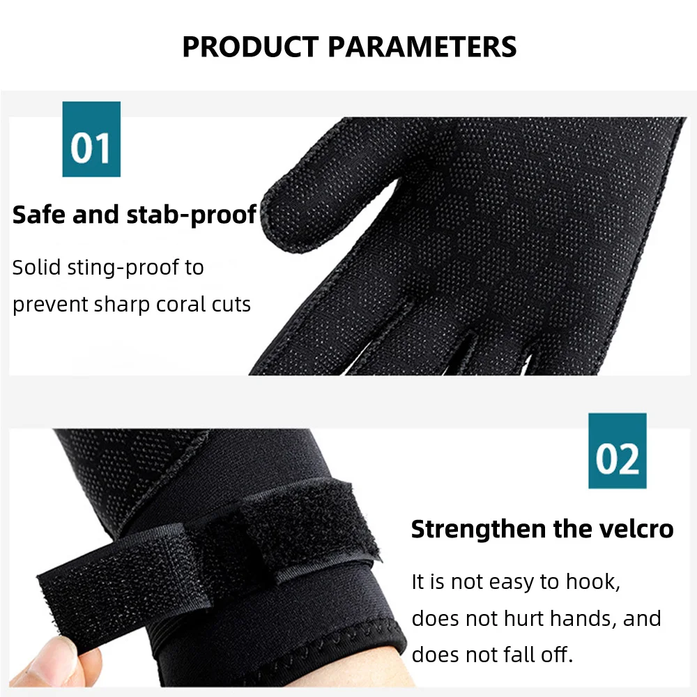 Adjustable Wrist Closure - There are Velcro Straps on wetsuit gloves wrist parts, ensure minimal water entry and close fit to prevent