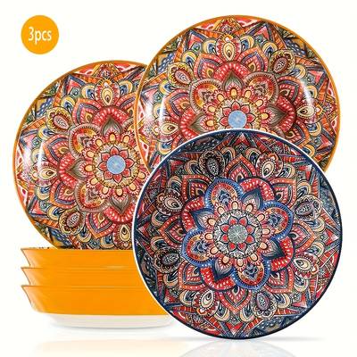 3pcs Ceramic Salad Plate Set Elegant Bohemian Style Plates for Every Occasion