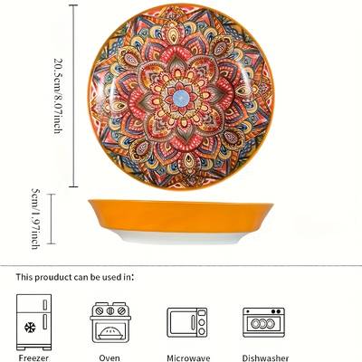 Crafted from high-quality ceramic, the 3pcs Ceramic Salad Plate Set is designed for both everyday use and special occasions. Each plate is hand-painted in a vibrant Bohemian style, ensuring no two are alike. The 20.32cm plates are perfectly sized for serving a variety of dishes, including salads, pastas, and soups. They are microwave and dishwasher safe, making them practical for busy families and those who enjoy easy cleanup after meals. Whether you're hosting a family dinner or enjoying a casual outdoor meal, this set provides both aesthetic appeal and practical functionality.