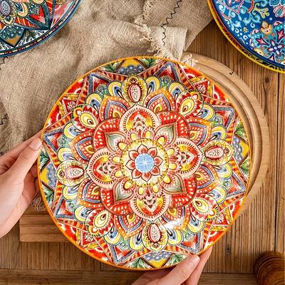 Hand-Painted Bohemian Design: Each plate is uniquely crafted with intricate hand-painted patterns, bringing a colorful and