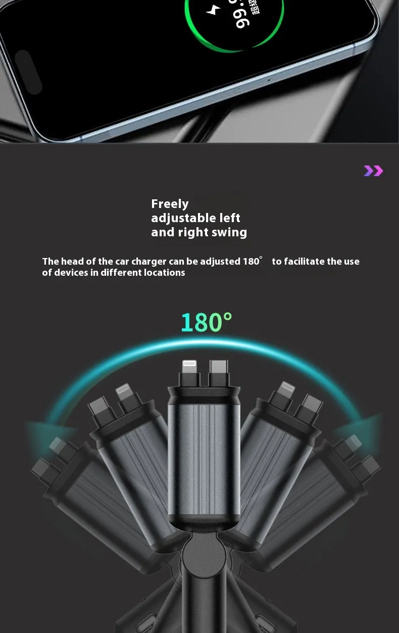 The 4 In 1 Retractable Car Charger Starlight is engineered to solve two common in-car problems: limited charging ports and cable mess. By combining multiple charging outputs with a retractable mechanism, it delivers a streamlined experience for drivers and passengers alike.