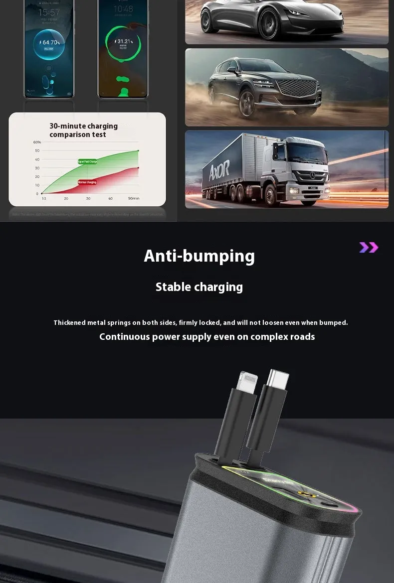 Reduces Cable Mess: Retractable design keeps the car tidy and organised.