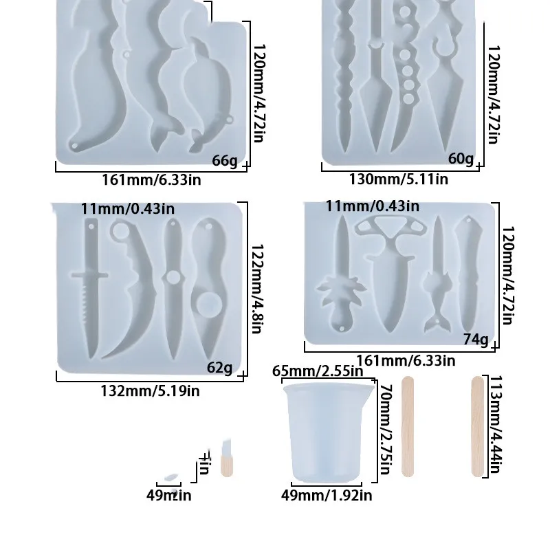 Specifications: Defensive knife silicone mold set (set 38)