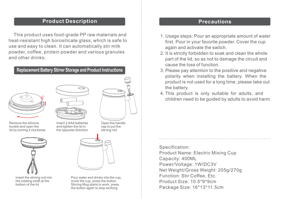 - ✙Easy Drink Maker: You can make any drink you like with this mug, from milk tea with glucose, to coffee with protein granules, to milk honey. It will mix them for you automatically. Just wash it under running water and it's done. A quick and easy way to prepare your drinks.