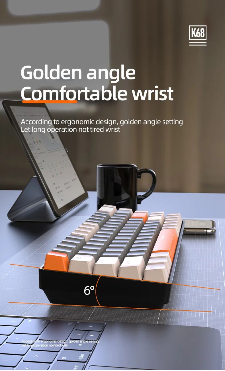 Users have praised the K68 for its responsive keys and comfortable typing experience. The hot-swappable feature allows for easy customization, and the dual wireless modes provide flexibility for various setups. One user mentioned, "It's a cheap attempt at a Tester68," highlighting its affordability compared to other mechanical keyboards.