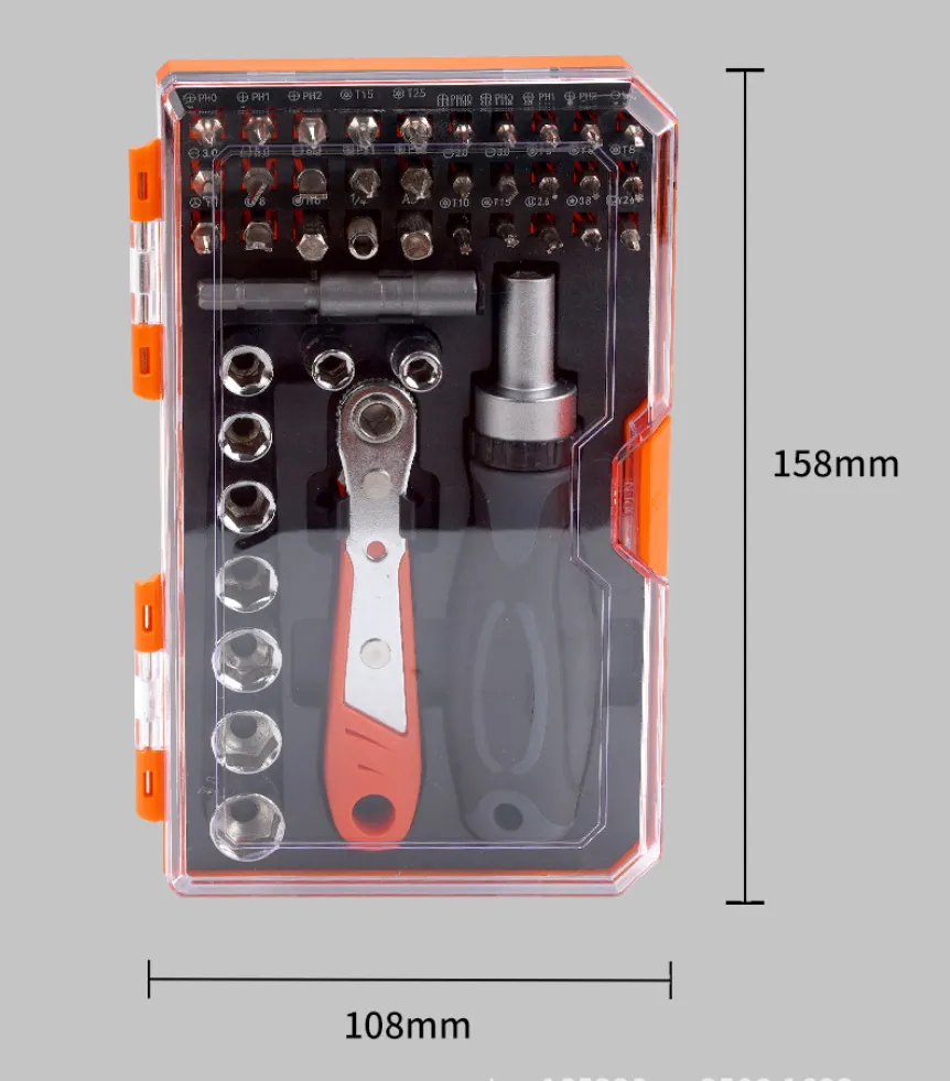 Equip yourself with the 42-in-1 Ratchet Screwdriver Set, a versatile and compact toolkit designed to tackle a wide range of repair and assembly tasks. Perfect for home, office, or workshop use, this all-in-one set includes 42 pieces tailored for precision work and general repairs, featuring a variety of interchangeable screwdriver bits, sockets, and a durable ratchet handle for effortless tightening and loosening. Crafted from high-quality, corrosion-resistant materials, these tools are built to withstand daily wear, providing long-lasting performance for any project.