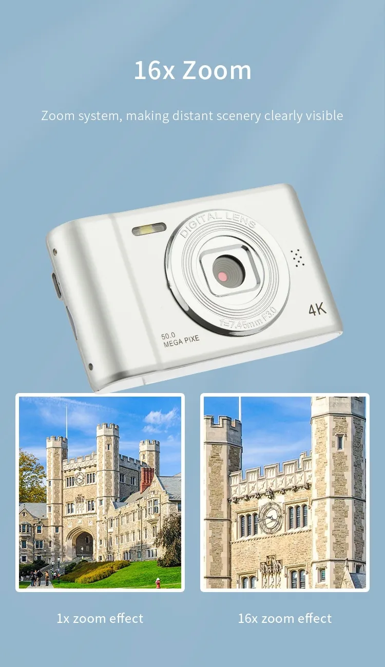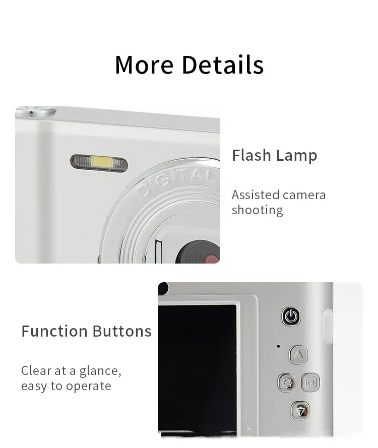 The 48 Million Pixels Retro HD Digital Selfie Camera features a long-lasting battery, allowing you to take hundreds of photos or hours of video recording without needing to recharge. This feature is particularly important for travel, events, or when you're out all day, and you don't want to worry about running out of battery in the middle of capturing a perfect shot.