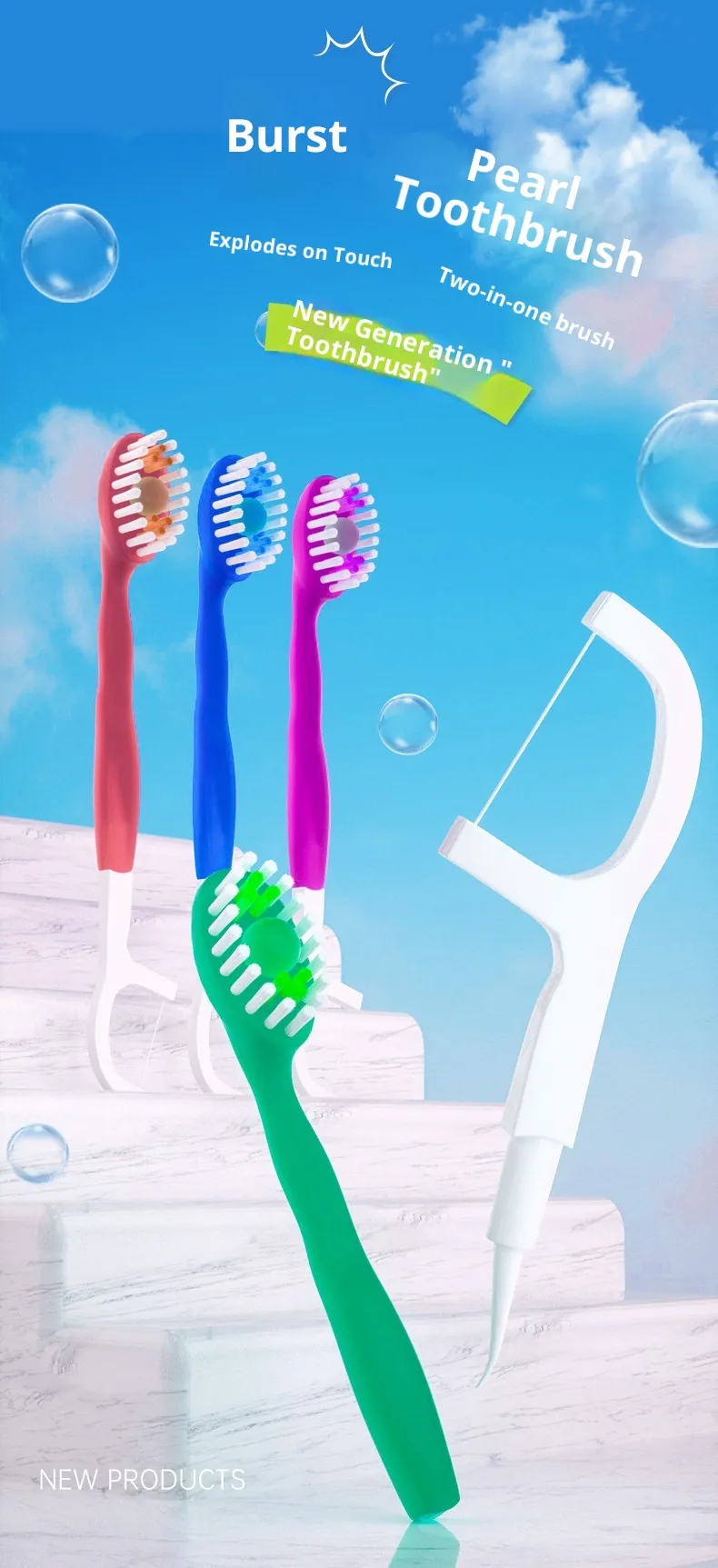 The bristles are soft and gum-protected, the floss is strong, the toothpick is smooth and burr-free, the tongue scraper fits the tongue surface, effectively cleans oral odor, comprehensively protects oral health.