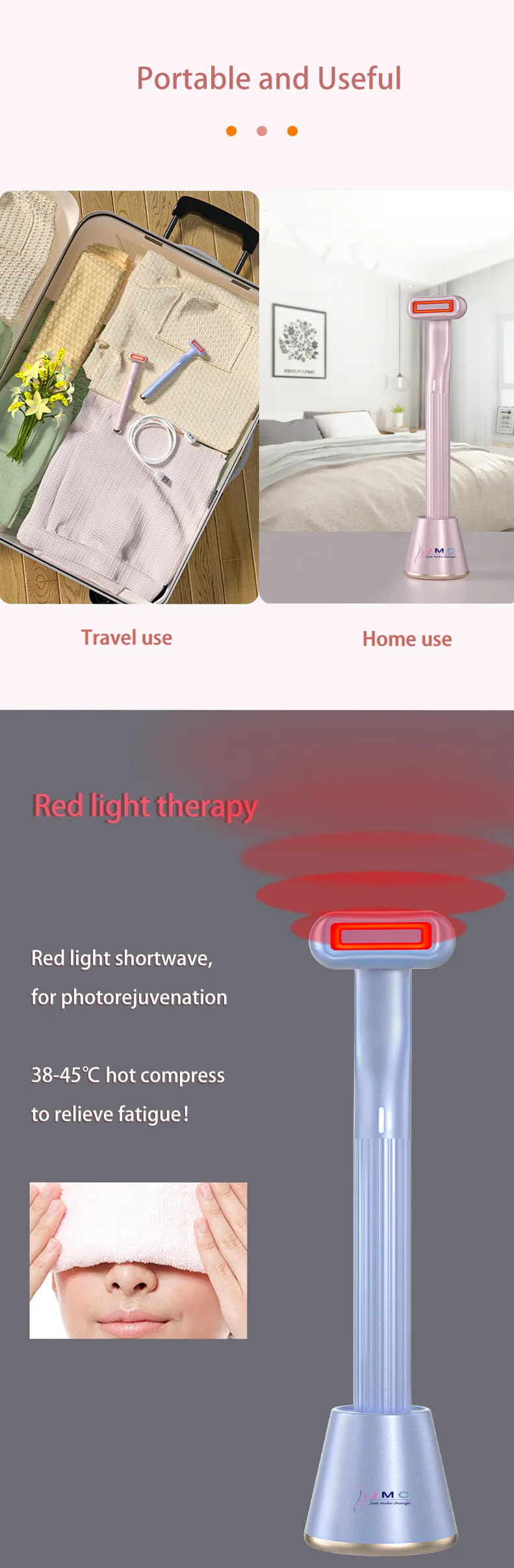 2. Red Light Therapy Optimal range of LED red light at 660nm helps deeply rejuvenate the skin and improve the appearance and vibrance of the