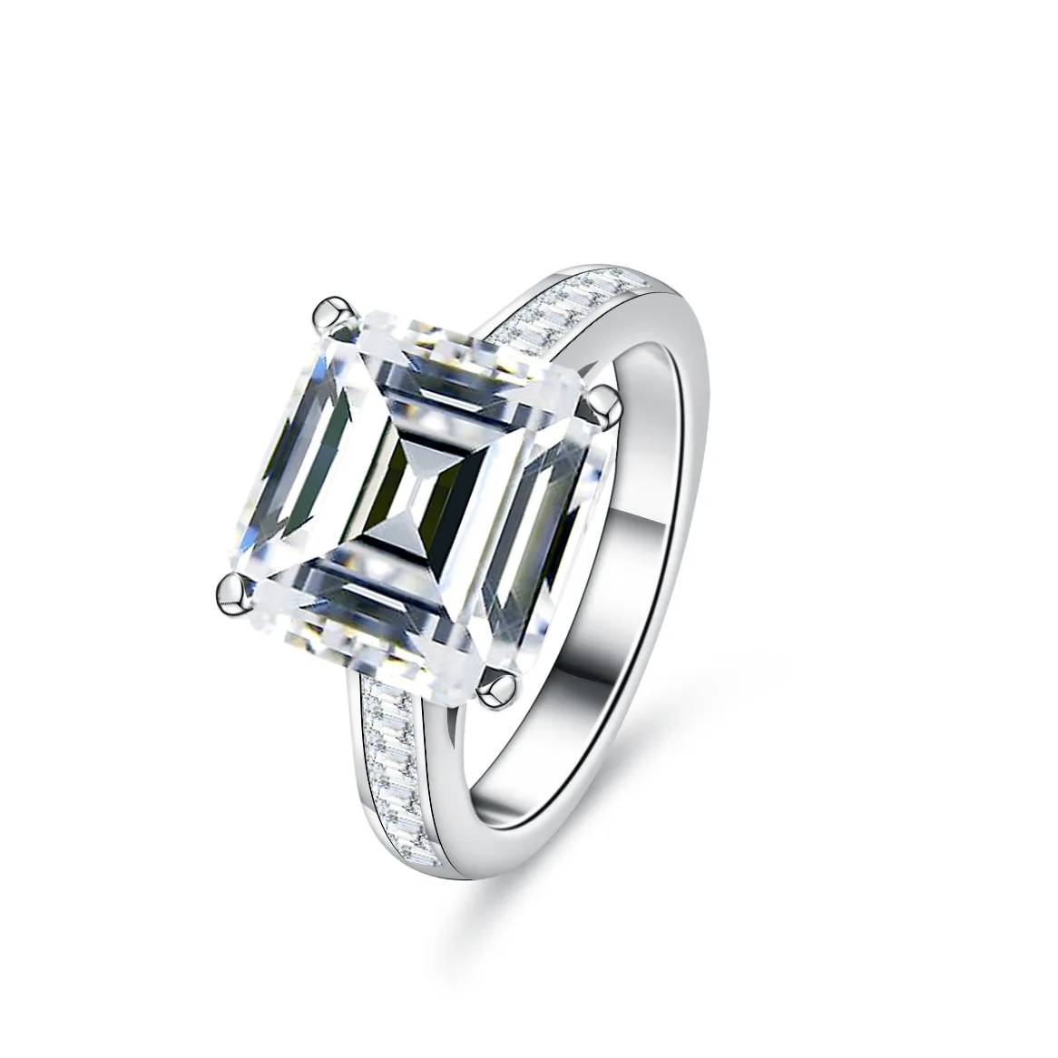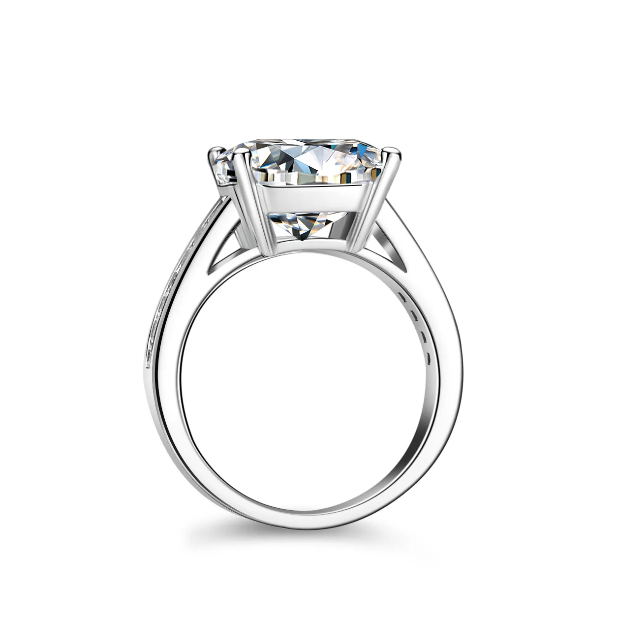 The ring’s classic yet sophisticated design makes it perfect for special occasions, engagements, weddings, or as a statement piece for everyday wear. The high-quality sterling silver band features a sleek, polished finish that complements the brilliance of the moissanite stone, creating a harmonious balance between simplicity and extravagance. The 5-carat moissanite stone is cut to maximize its brilliance, ensuring it catches the light beautifully from every angle, making you the center of attention.