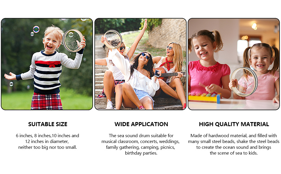 - Wide Range of Applications: the ocean sound drum is ideal supply for the musical classroom, whether playing alone or with a group; In addition, the drum is also suitable for concerts, weddings, birthday parties, family reunions, friends gatherings, camping and picnics