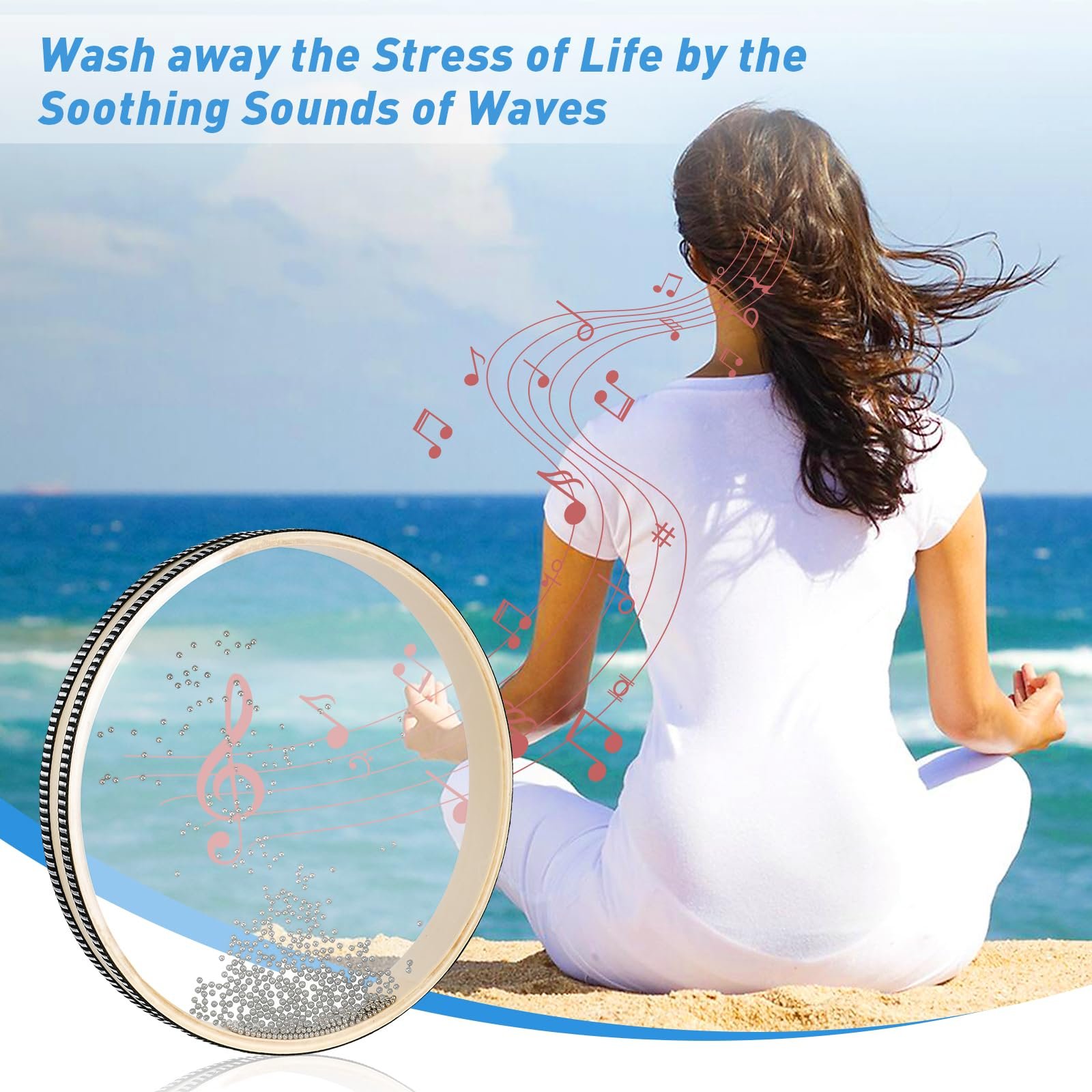 - Relax Mind with Ocean Waves :Immerse yourself in a serene journey as you hold the ocean drum horizontally with both hands and make the metal beads roll slowly. Feel the stress melt away with the soothing sound of rolling waves. Whether you're experiencing it yourself or performing for others, it's a blissful healing journey.