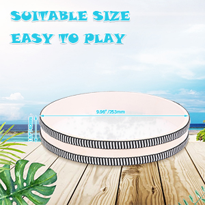 - Wooden Hoop with Comfortable Grip: The drum hoop is made of quality wood with fine stitching, ensuring sturdiness and reliability. Its non-slip design offers comfortable handling, while its moderate size—about 6" in diameter and 1.2" in height—makes it lightweight and fatigue-free even after extended use.