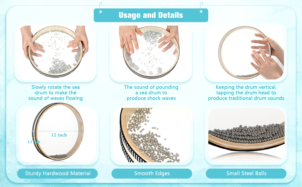 - Nice Wave Sound Effect: you just need to simply tilt the drum horizontally to make the sound of waves, these sea sound drums will produce pleasant wave sounds that sound like the ocean, designed with many metal beads inside, to create a beautiful sound resembling the crashing of waves, adding an enchanting element to your music or ambiance