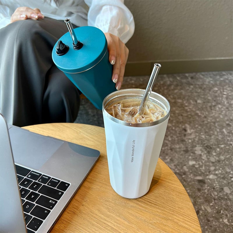 600ml Stretchy Straw Coffee Carry-Cup