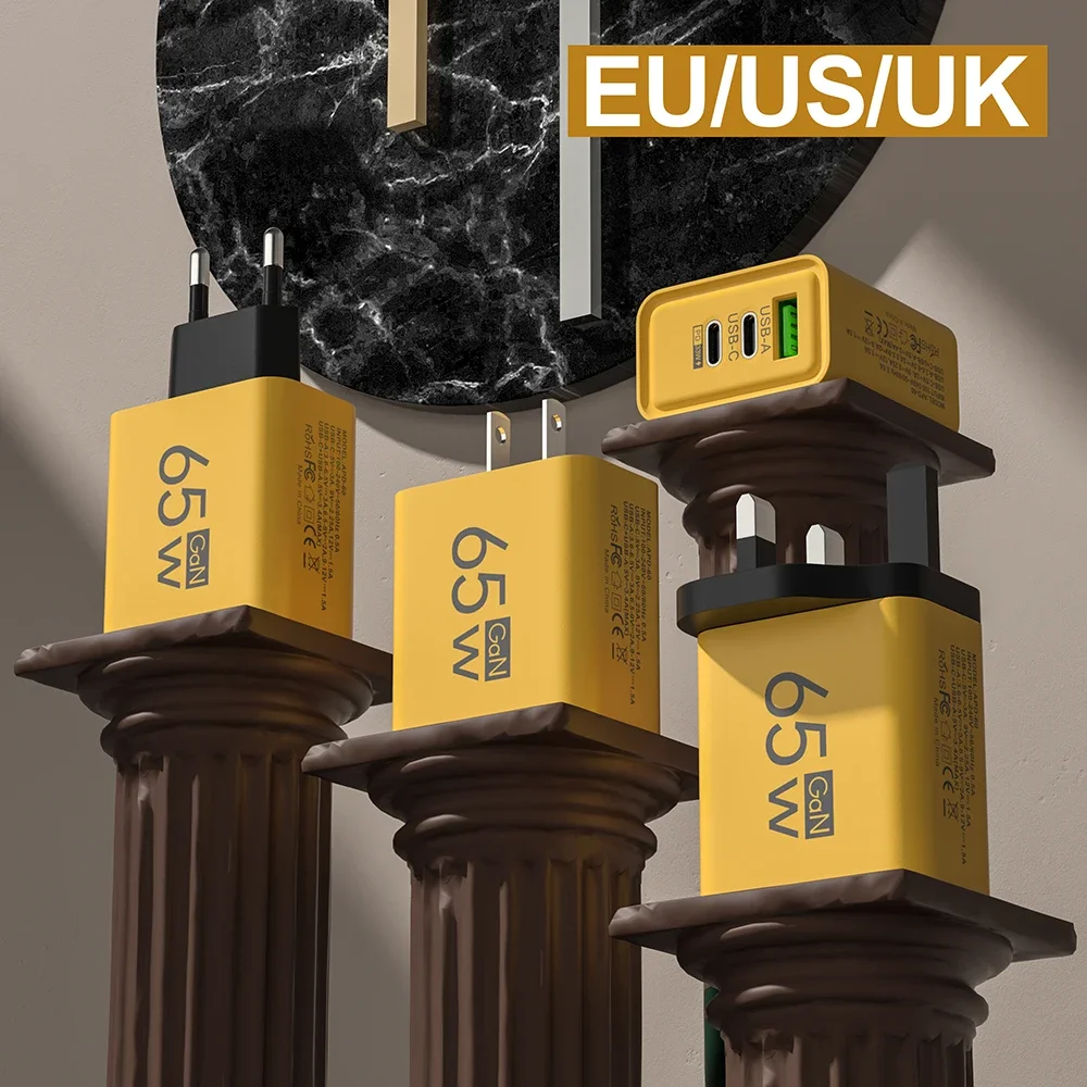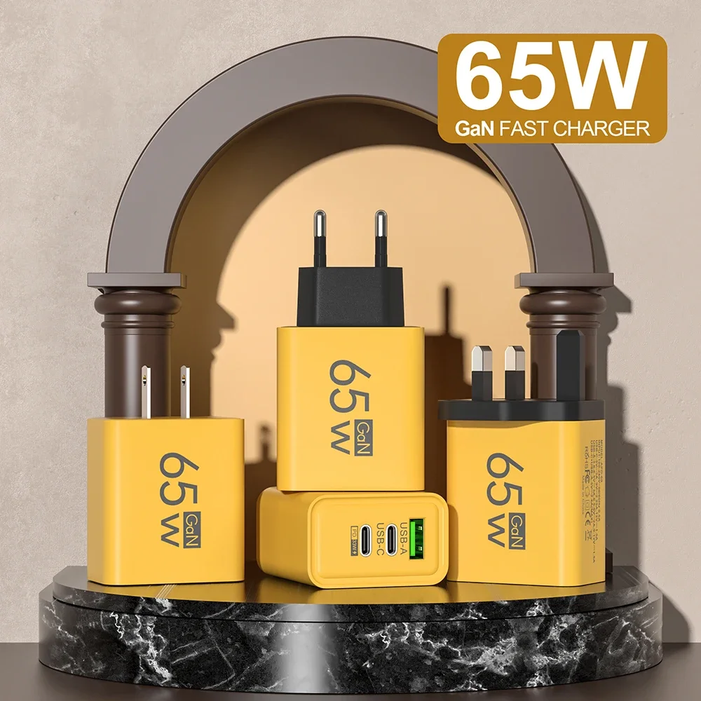 This 65W GaN USB PD charger features three ports for fast and efficient charging. It supports Quick Charge 3.0 and comes with a high-speed USB-C to Type-C data cable. Perfect for charging multiple devices, including cellphones, this wall adapter ensures reliable power delivery.