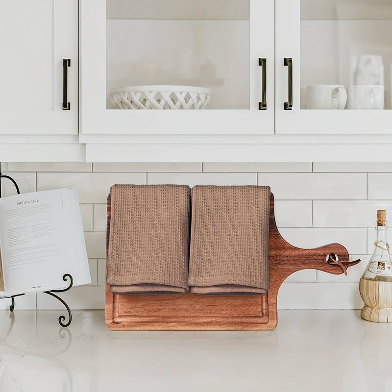 With solid colour patterns and a farmhouse-inspired style, they add a touch of charm to your kitchen décor. The towels are easy to care for and designed for machine washing, making them a low-maintenance solution for everyday kitchen tasks.