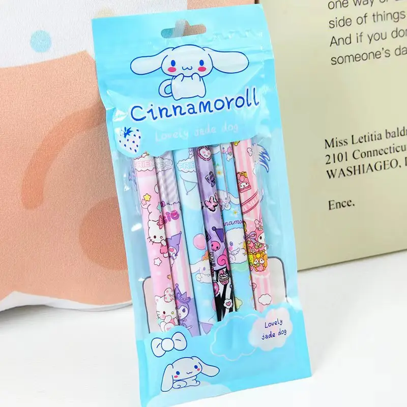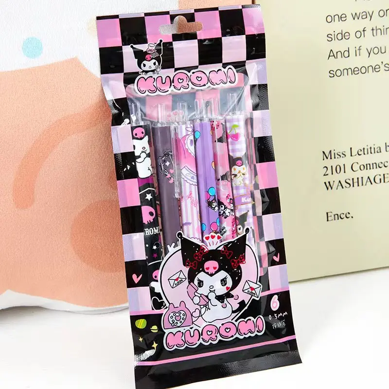Elevate your writing experience with the 6Pcs/Set Kawaii Sanrio Hello Kitty 0.5mm Gel Pens. Perfect for students, stationery enthusiasts, and anyone who loves a touch of cuteness in their office supplies, this set features charming Hello Kitty and Kuromi designs. These gel pens are not only practical but also make delightful gifts for children and fans of Sanrio characters.
