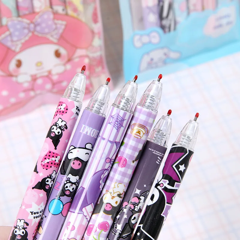 6Pcs/Set Kawaii Sanrio Hello Kitty 0.5mm Gel Pens Cute Kuromi Press Gel Pen Cartoon Kids School Student Stationery Supplies Gift